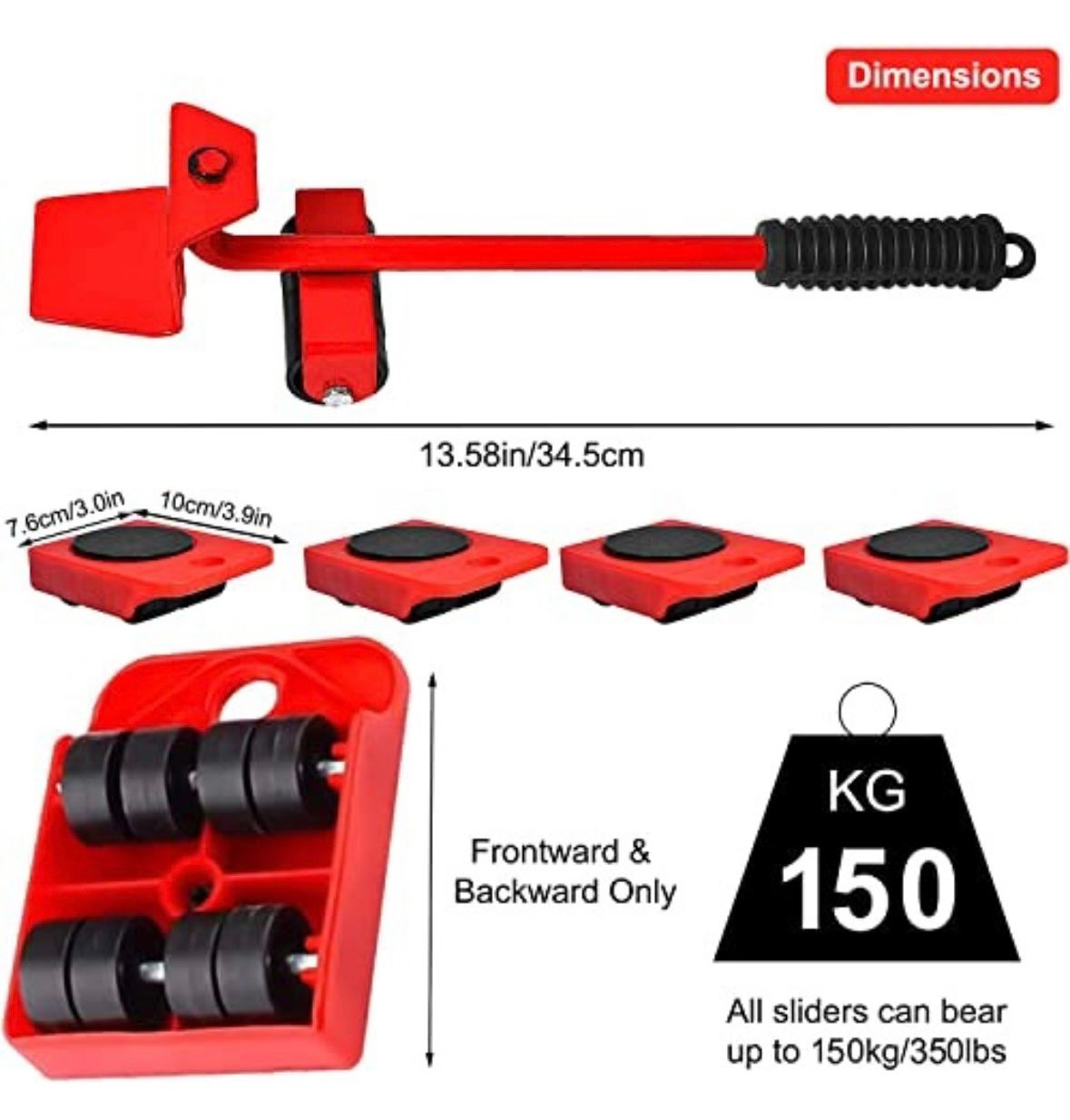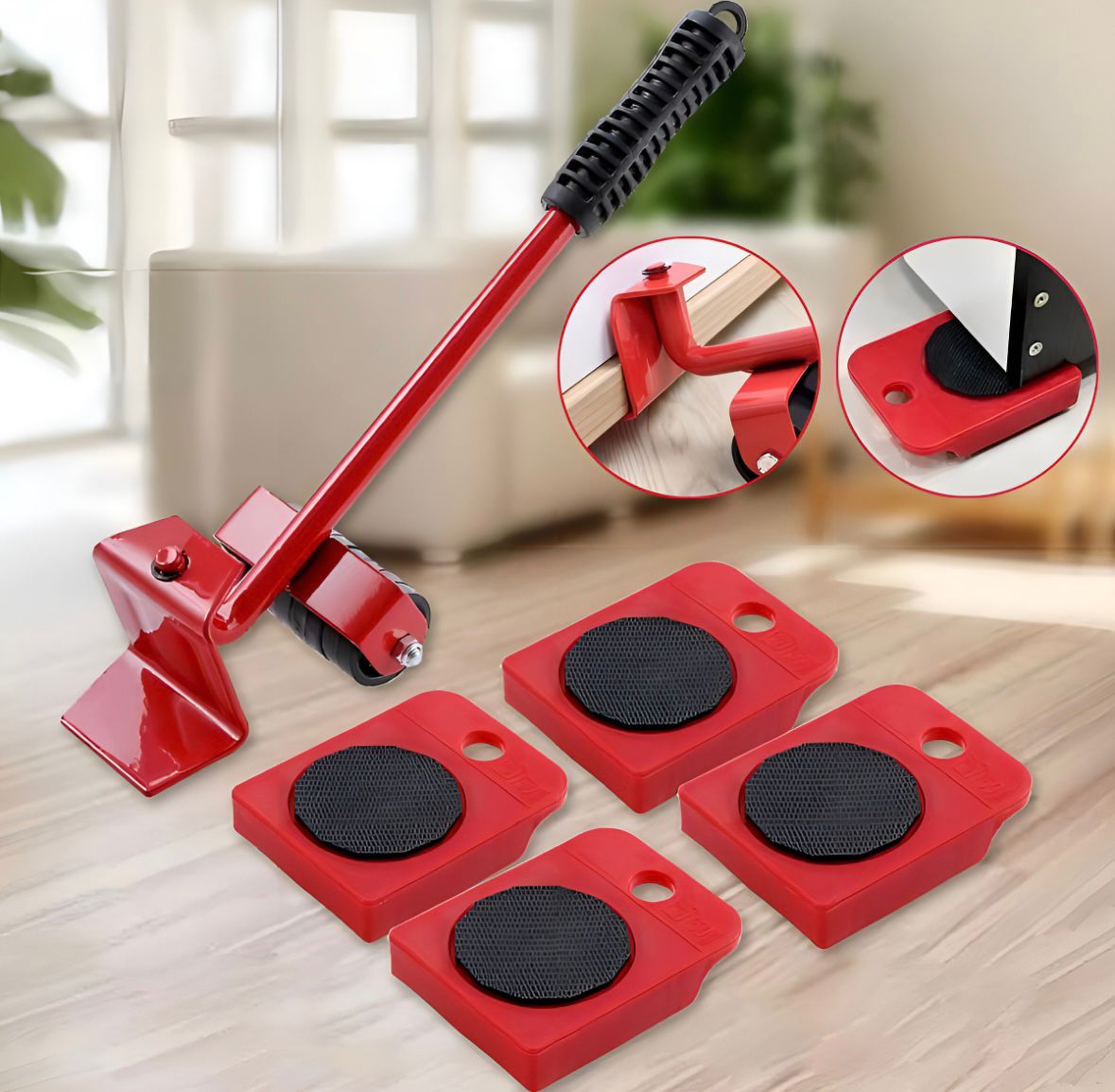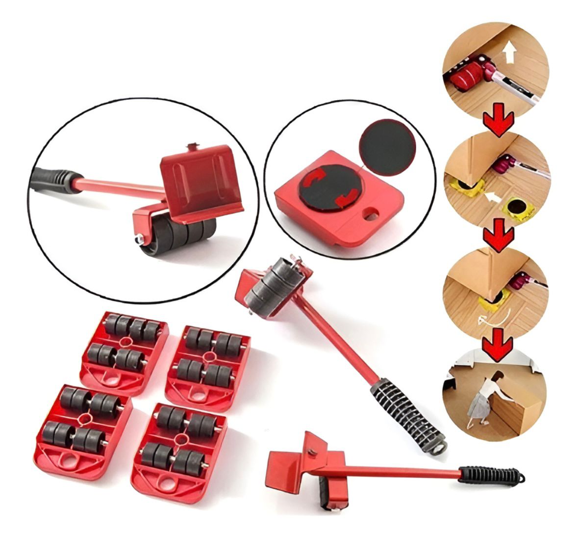 ¡Muy fácil! Solo coloca la palanca debajo del mueble, levanta suavemente y desliza las bases con ruedas. En segundos puedes mover todo sin cansarte.