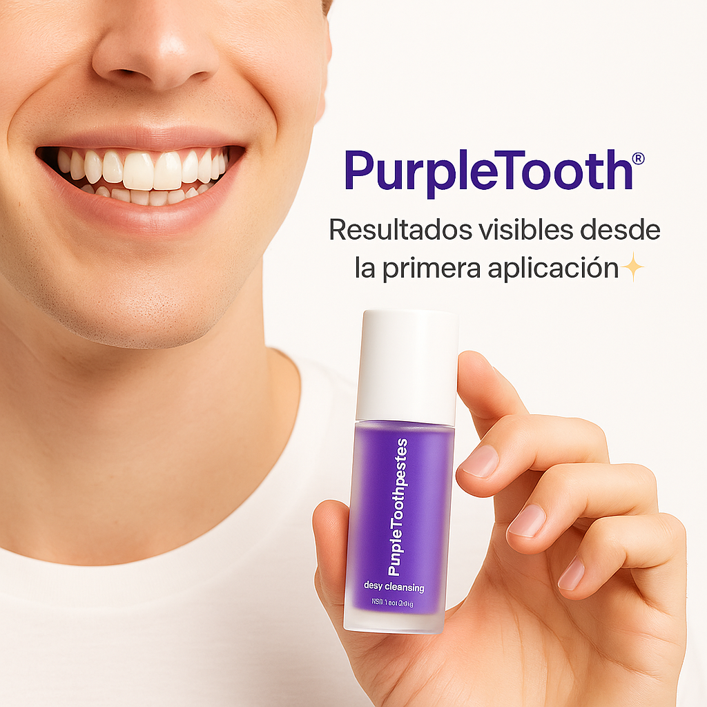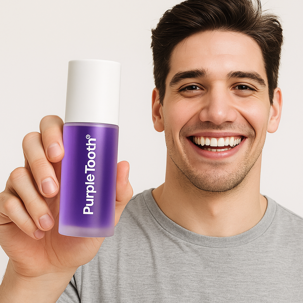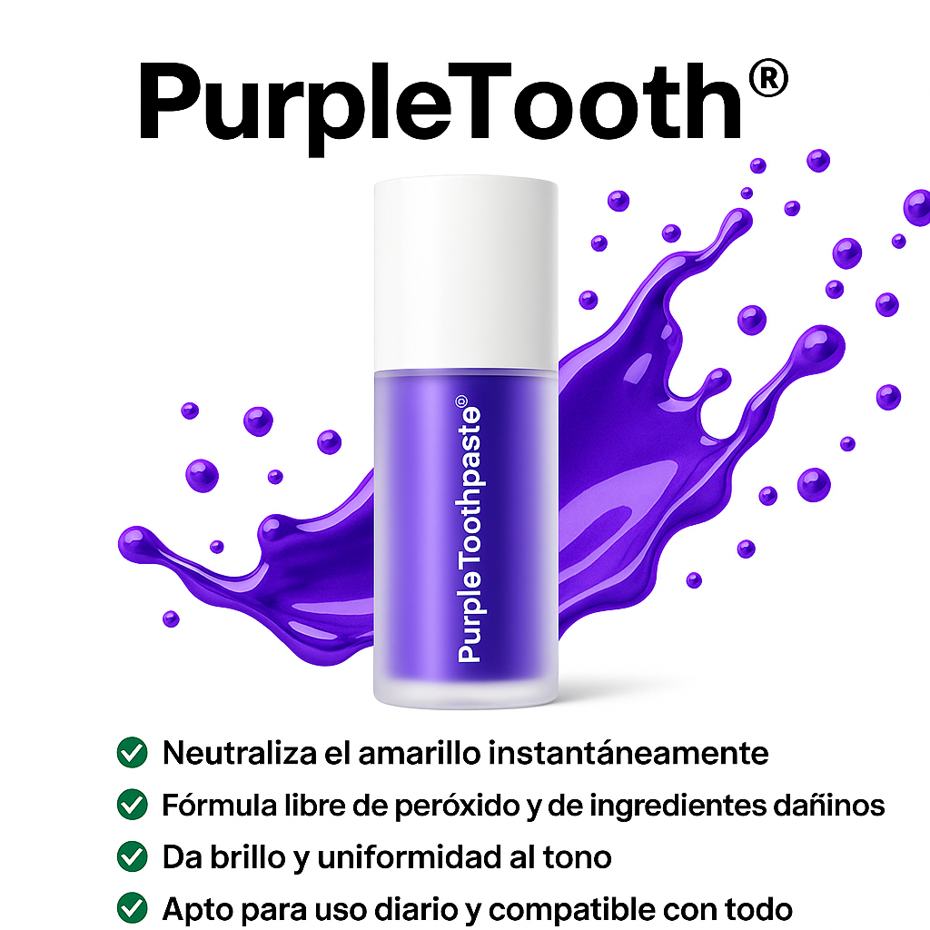 PurpleTooth® ofrece una alternativa inteligente, diseñada para uso diario, que corrige visualmente el tono de tus dientes desde la primera aplicación.